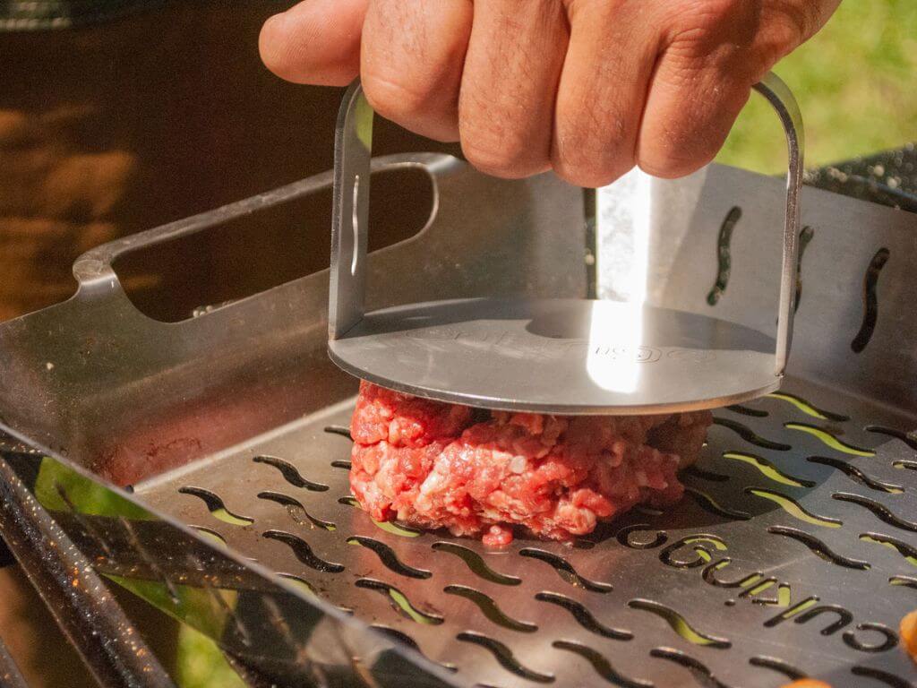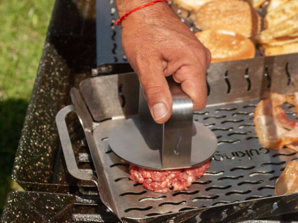 CON EL SMASHER PARA HAMBURGUESAS VAS A PODER LOGRAR QUE LOS MEDALLONES DE CARNE QUEDEN CON UN PESO Y GROSOR IDEAL PARA ASAR, GENERANDO UNA COCCIÓN PAREJA Y EVITANDO QUE EL CENTRO QUEDE SIN COCINAR.