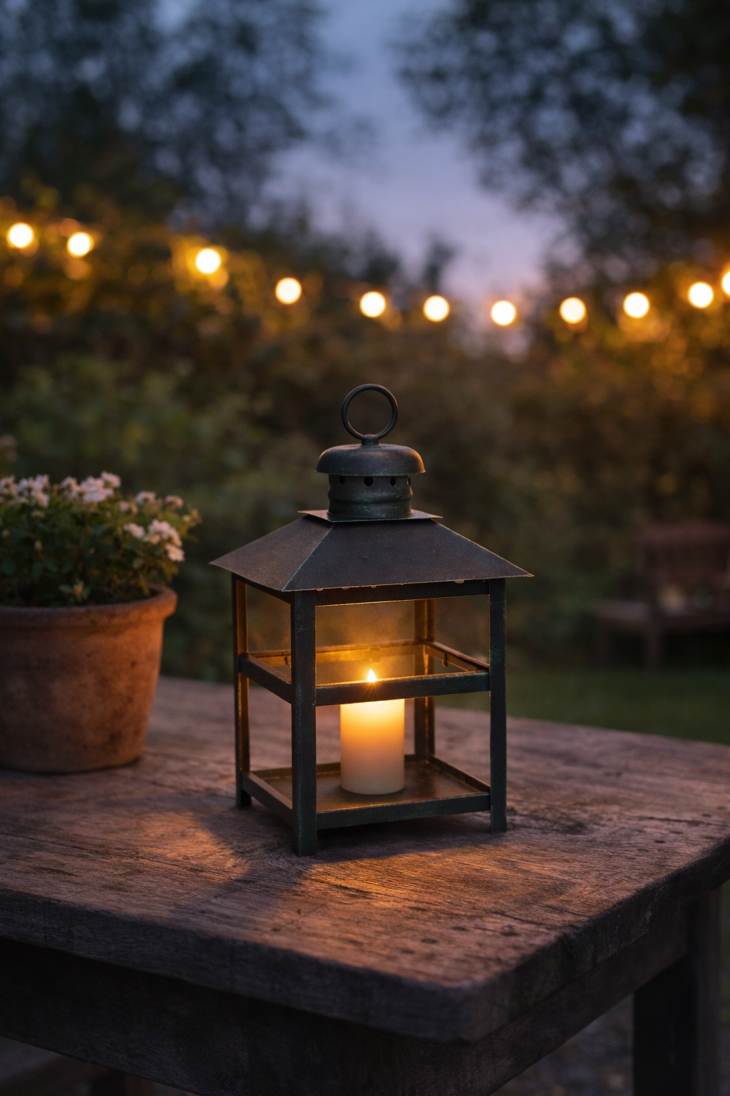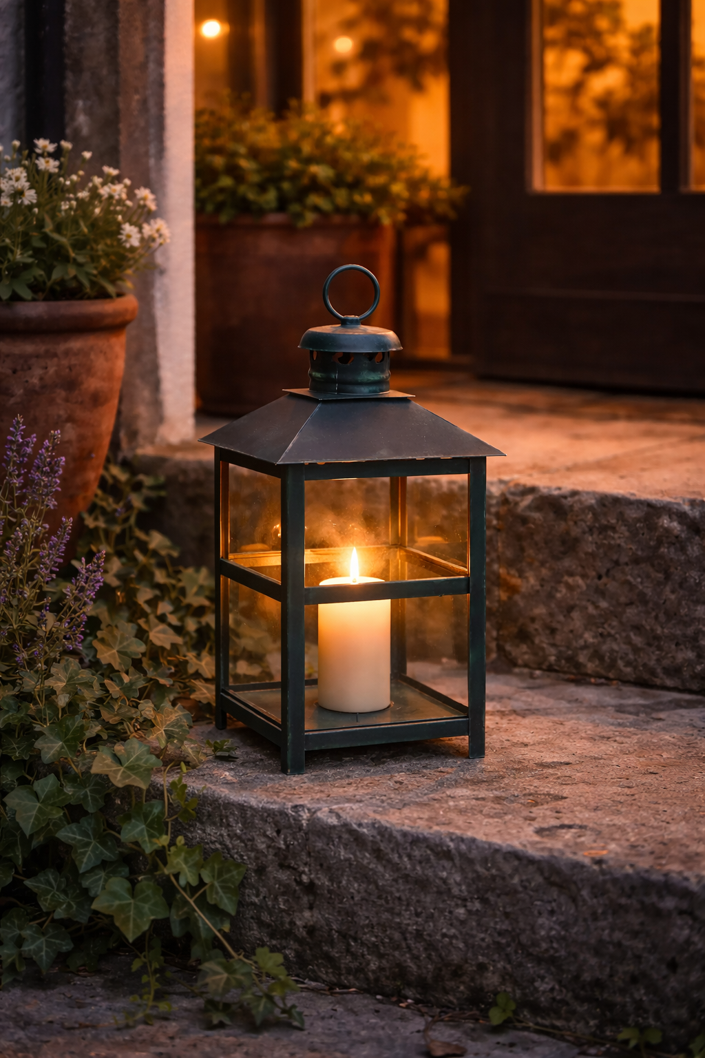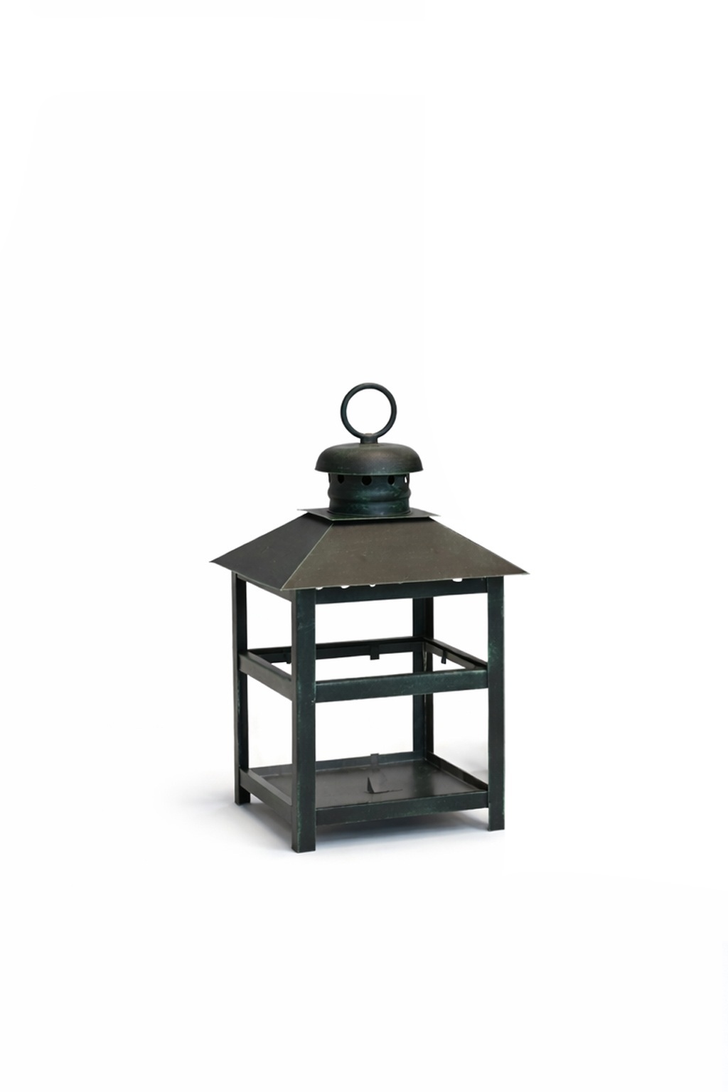Fanal decorativo portavelas de cuatro caras con vidrios.